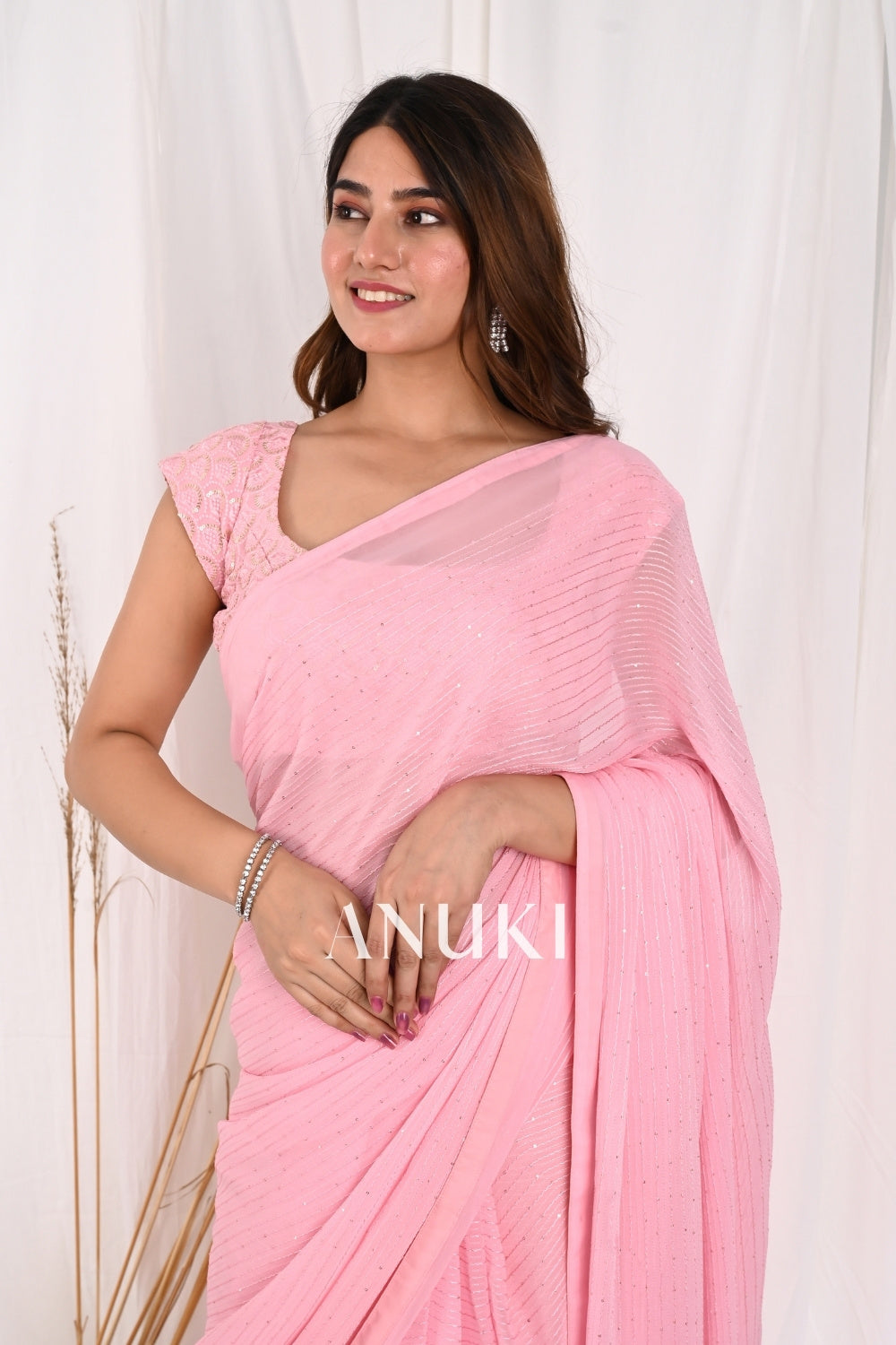 One of the most significant advantages of buying designer sarees online from Anuki is the sheer range of materials available. This includes luxurious silk sarees, breezy georgette sarees, and comfortable chiffon sarees, and much more. Each material offers its unique texture, drape, and look, allowing you to choose one that suits your personal style best.