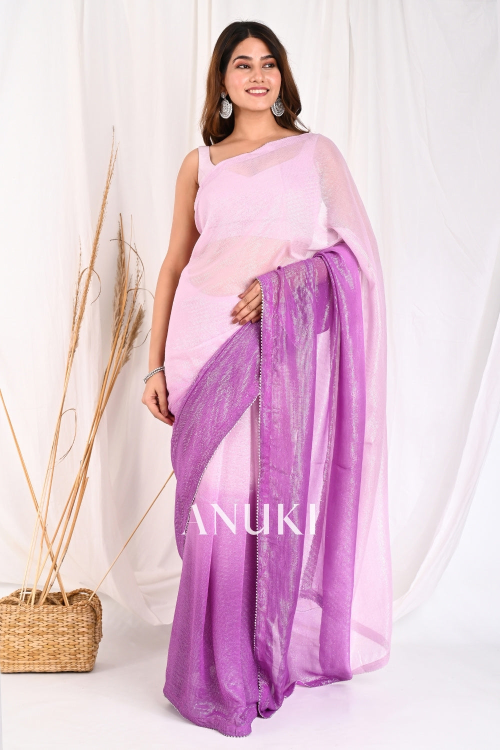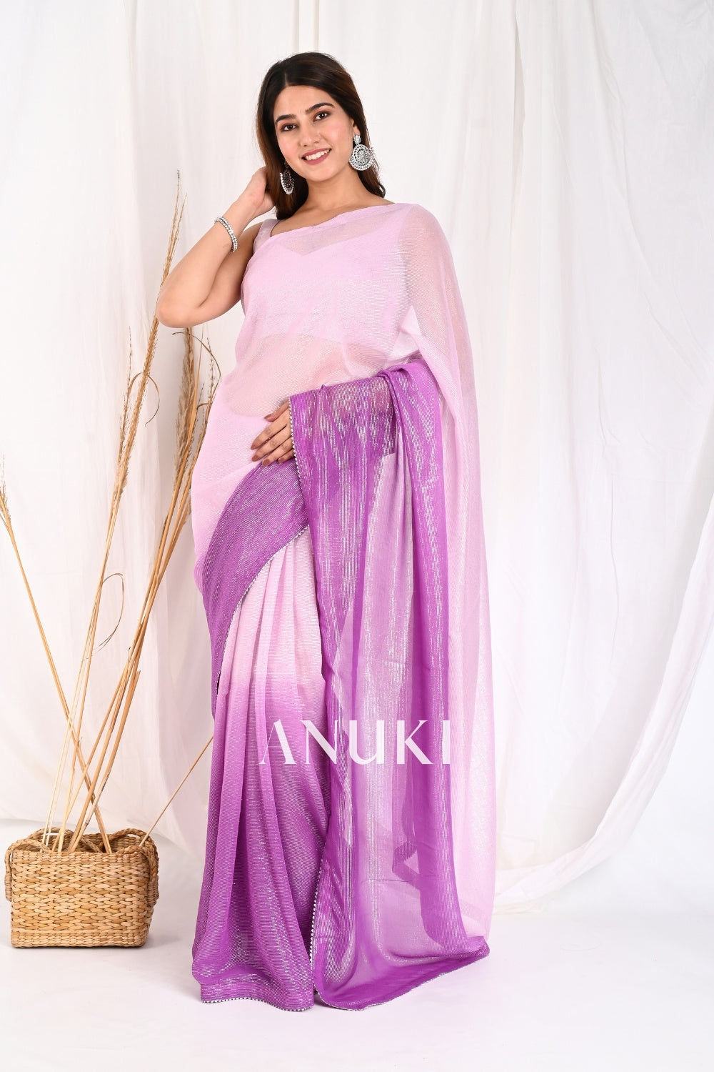 Featuring Lavender Ombre Cocktail Saree with Gotta lace detailing
