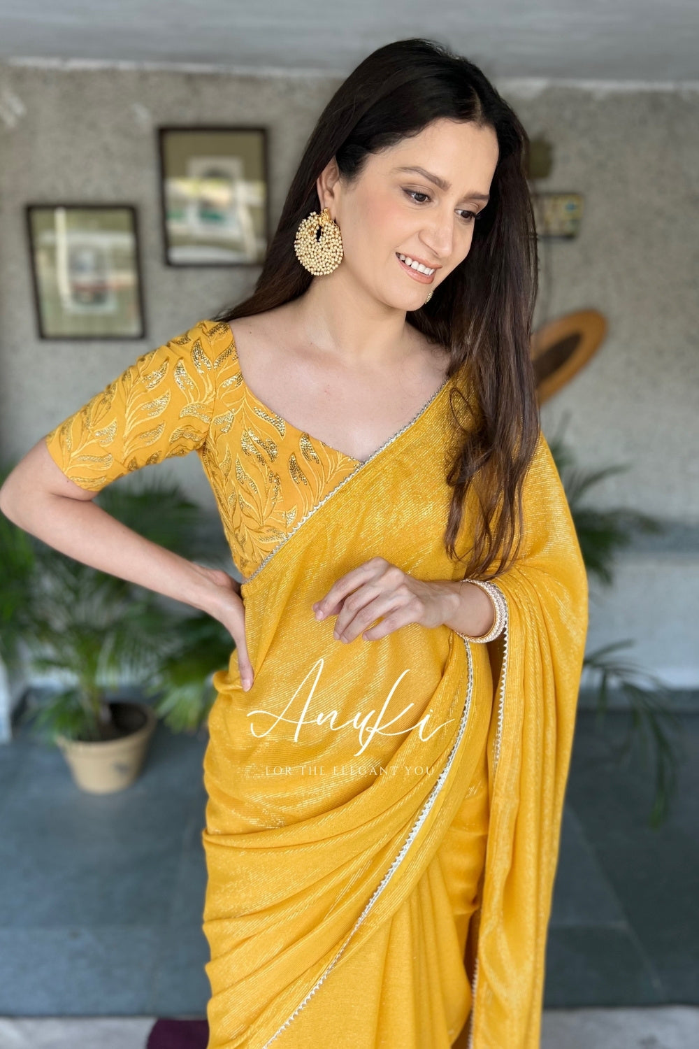 Featuring Yellow Cocktail Saree with Gotta lace detailing
