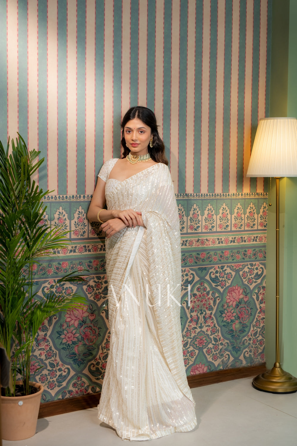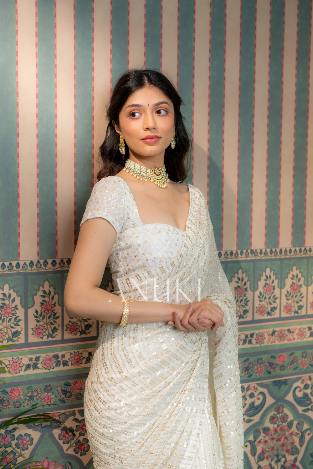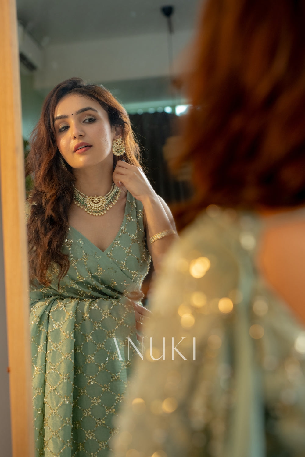 Red Satin Ajrak Printed Saree With Scallop Embroidered Border