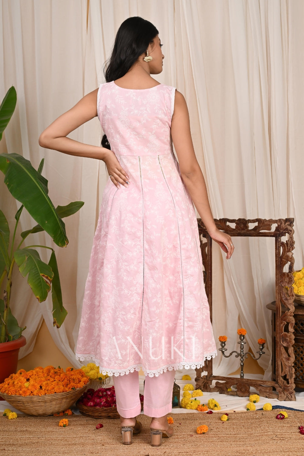Pink Embroidered Cotton Suit Set