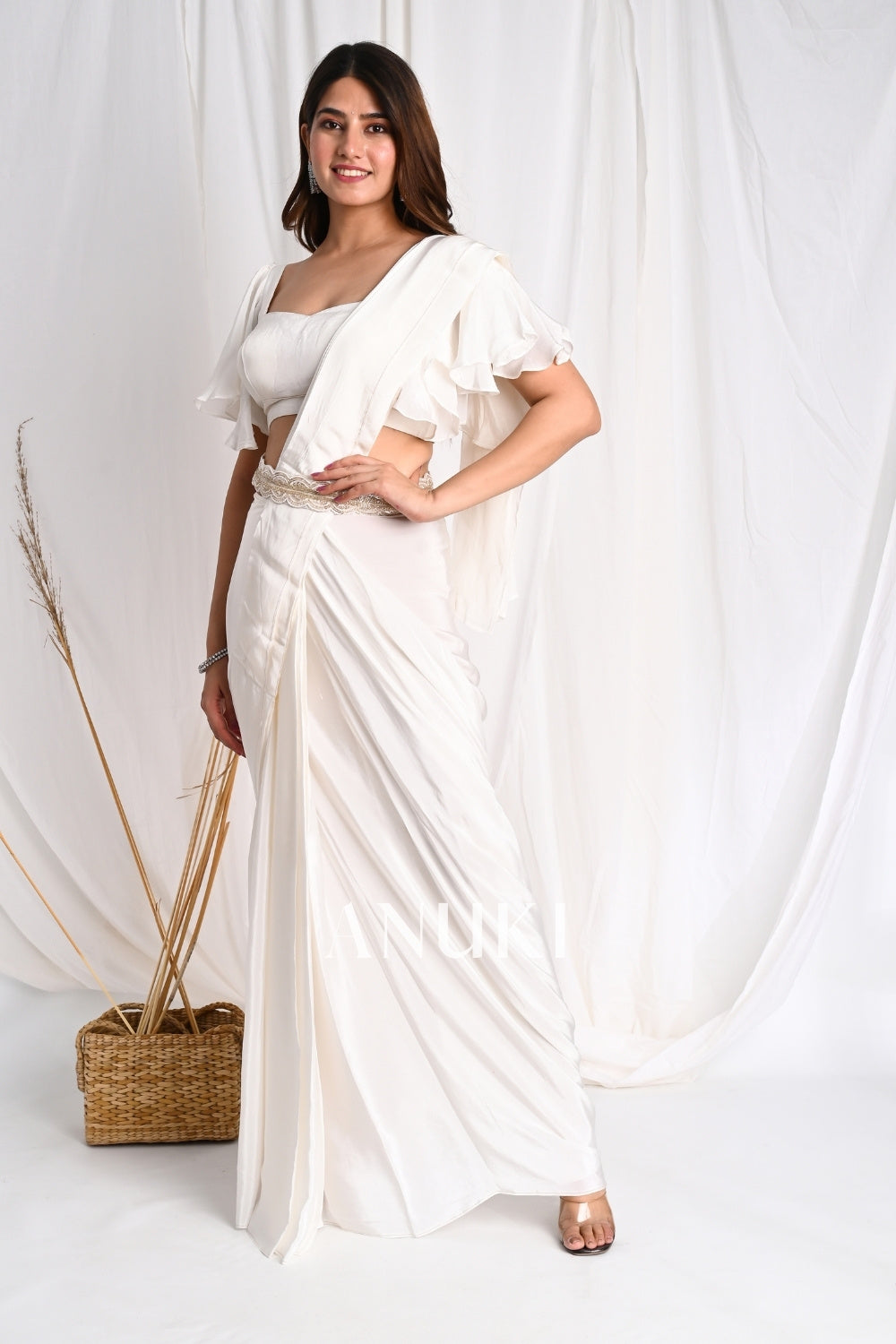 Ivory Pre-Stitched Saree Set with Embellished Belt
