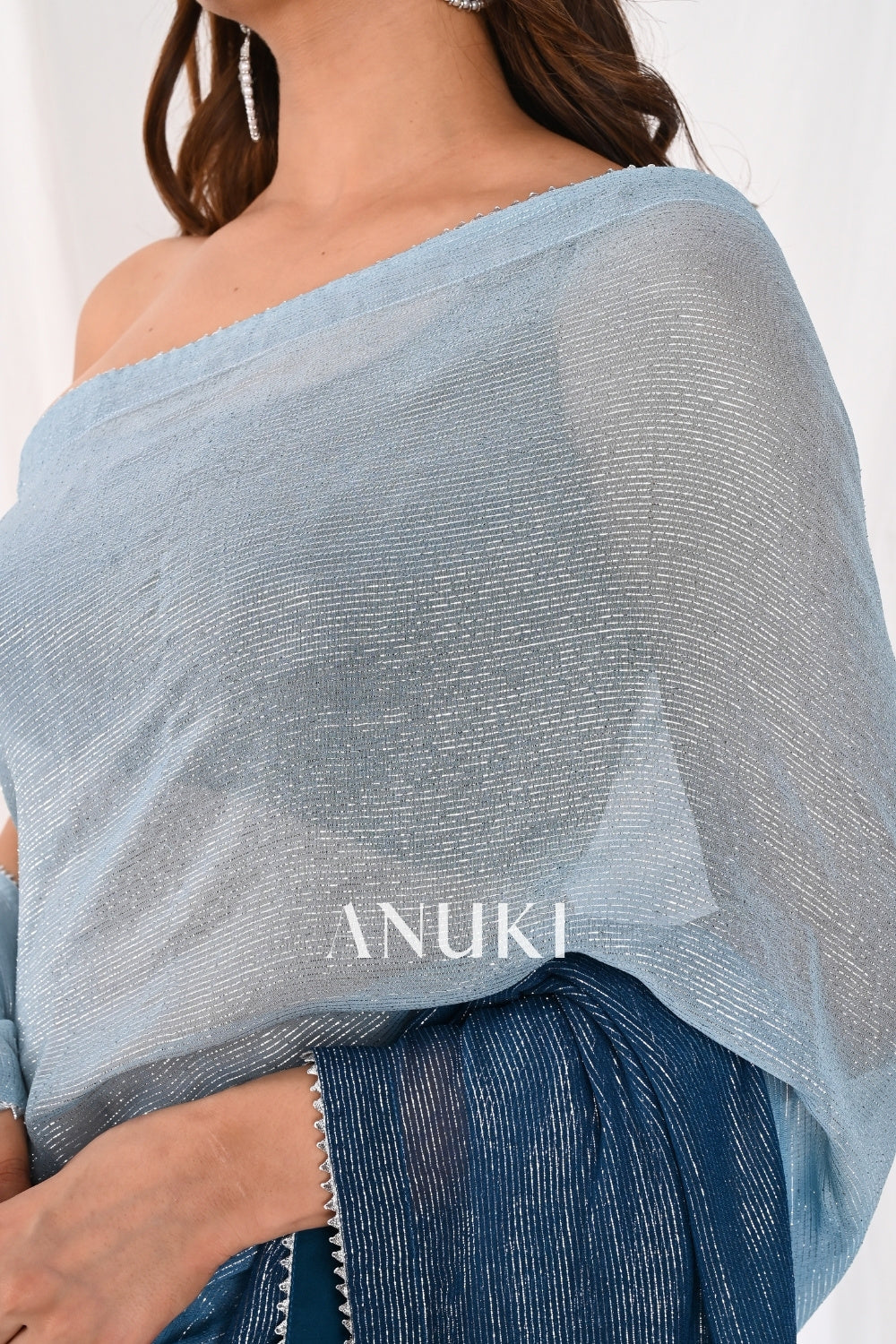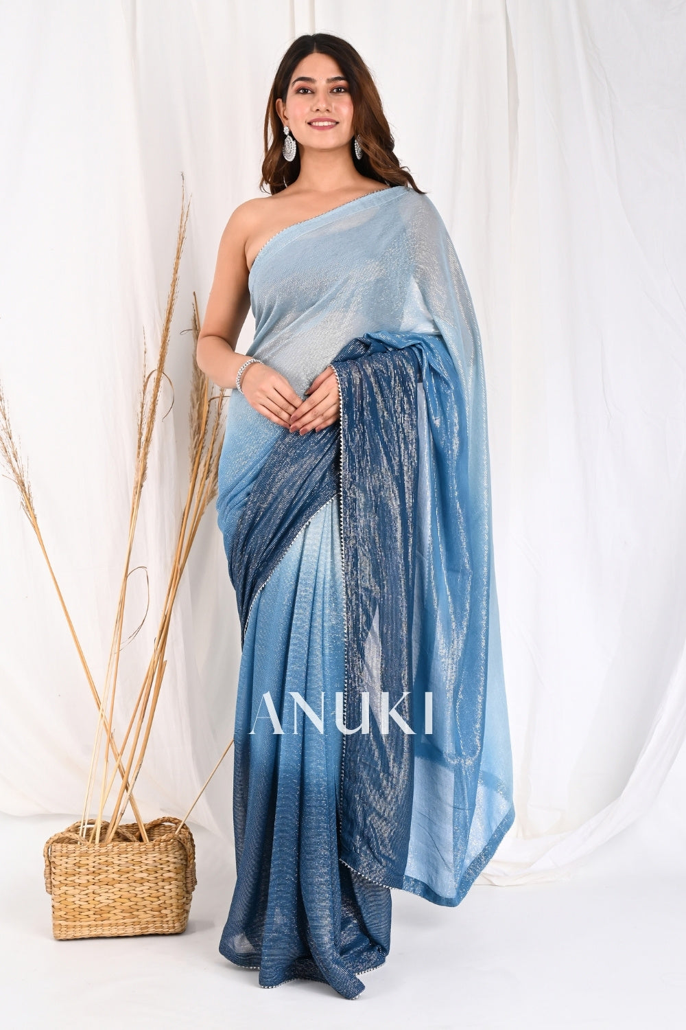 Featuring Blue Ombre Cocktail Saree with Gotta lace detailing