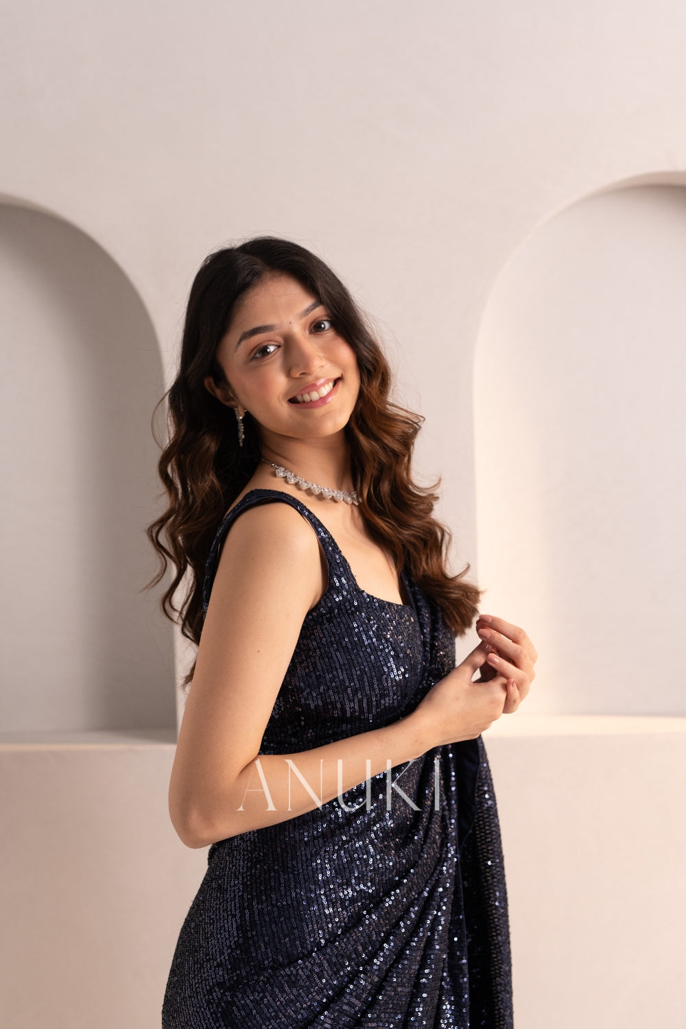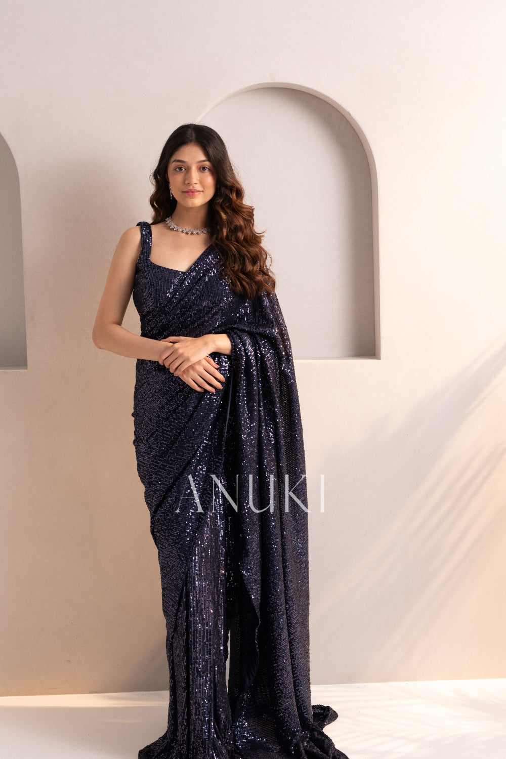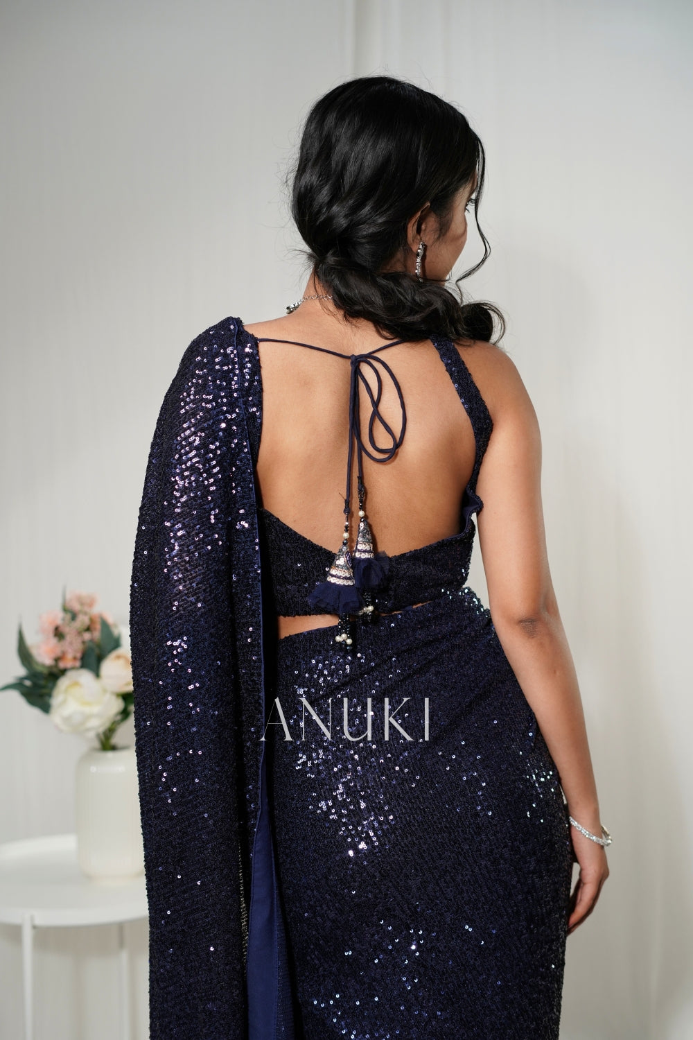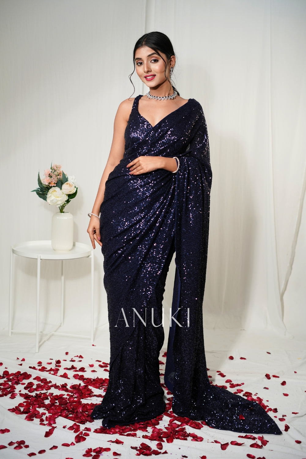 Navy Blue Embellished Sequin Saree