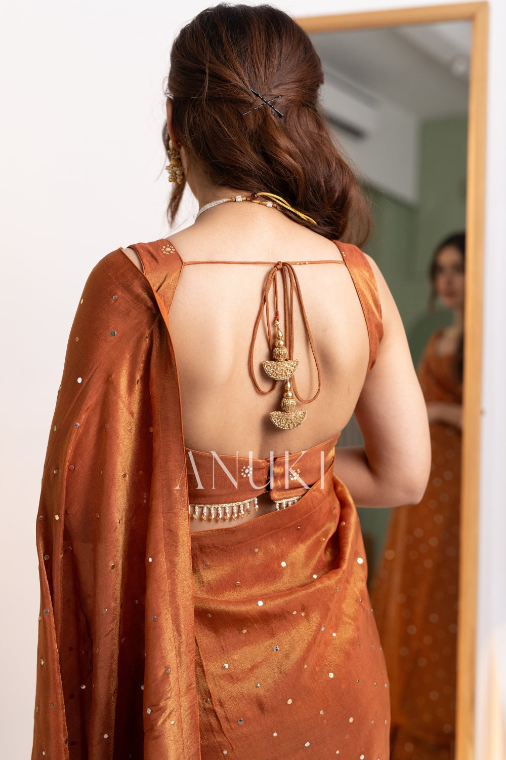 Shagun Rust Orange Tissue Silk Saree